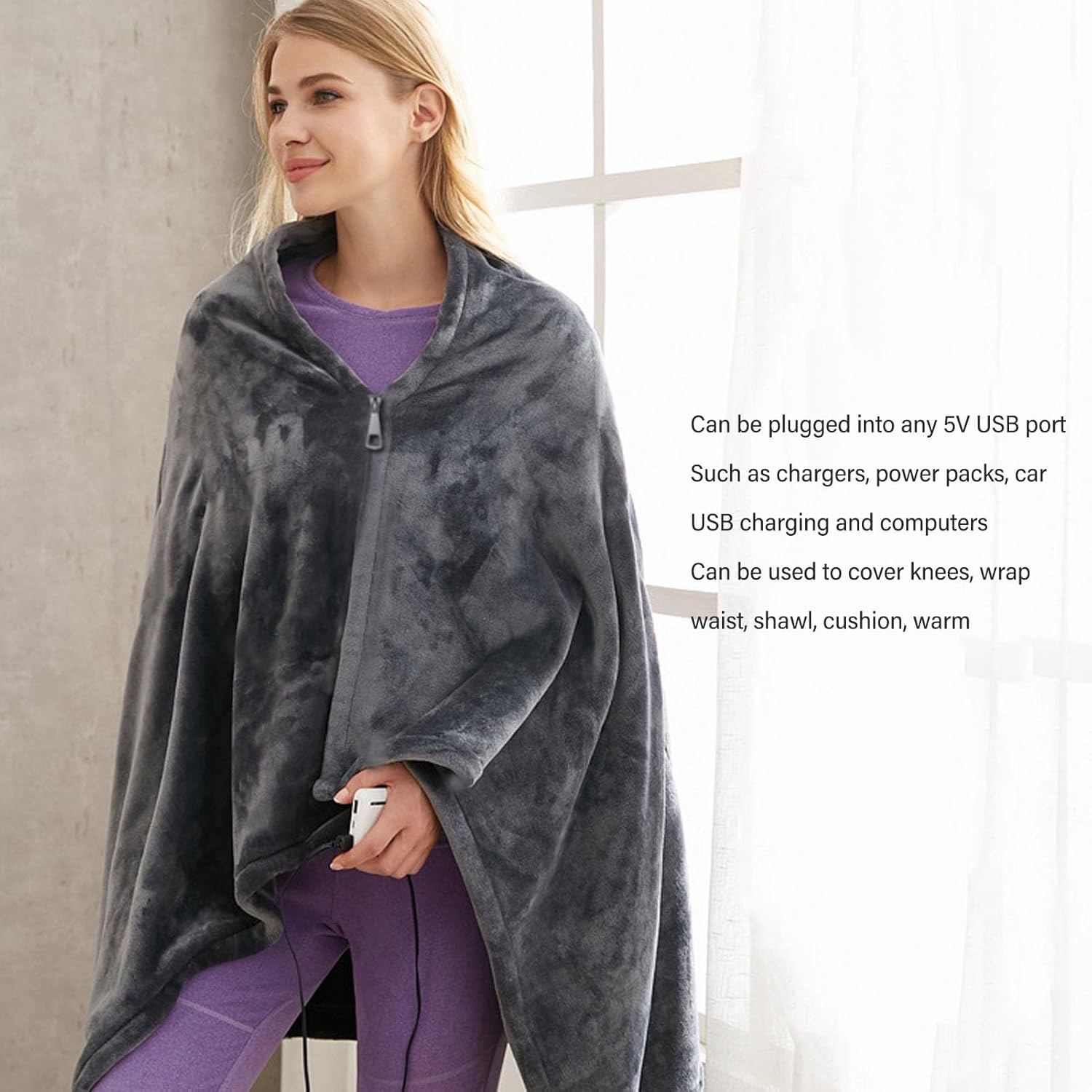 Puha flanelből készült, ez a fűtött sál-takaró nemcsak meleg, hanem könnyű és kényelmes viselet is. Egyszerűen a vállára terítheti vagy az ölébe helyezheti – ideális mindennapos otthoni, irodai vagy utazási használatra.