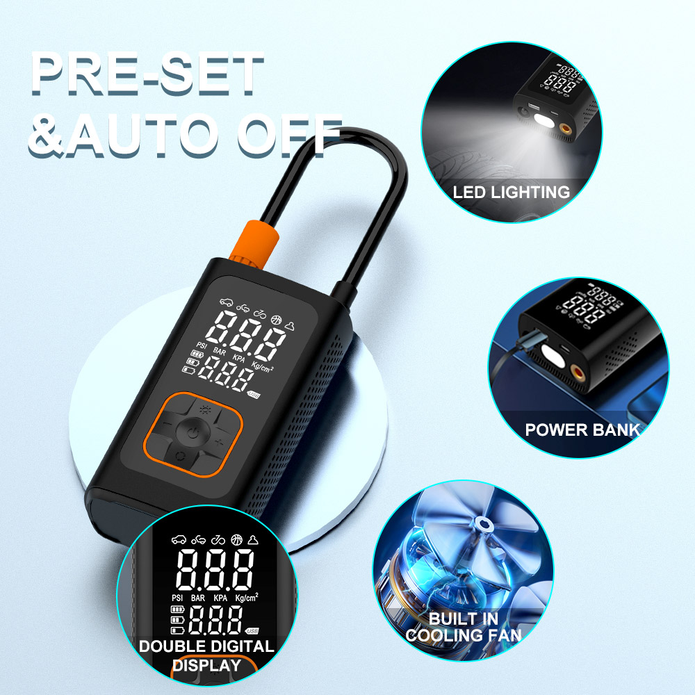 Nagy teljesítményű PUMPIX chipjének köszönhetően rekordidő alatt felfújja az abroncsokat. 30-ról 35 PSI-re mindössze 50 másodperc alatt! Egy teljesen leeresztett autógumit mindössze 5 perc alatt teljesen felfúj. A nagy LED kijelző mutatja az aktuális és az előre beállított nyomást a teljes ellenőrzés érdekében.